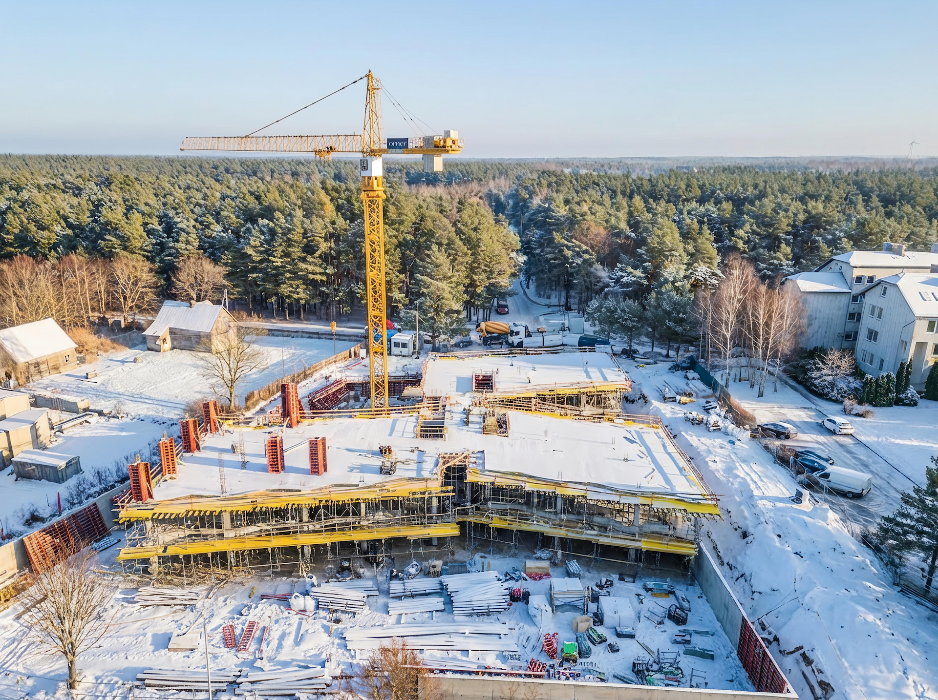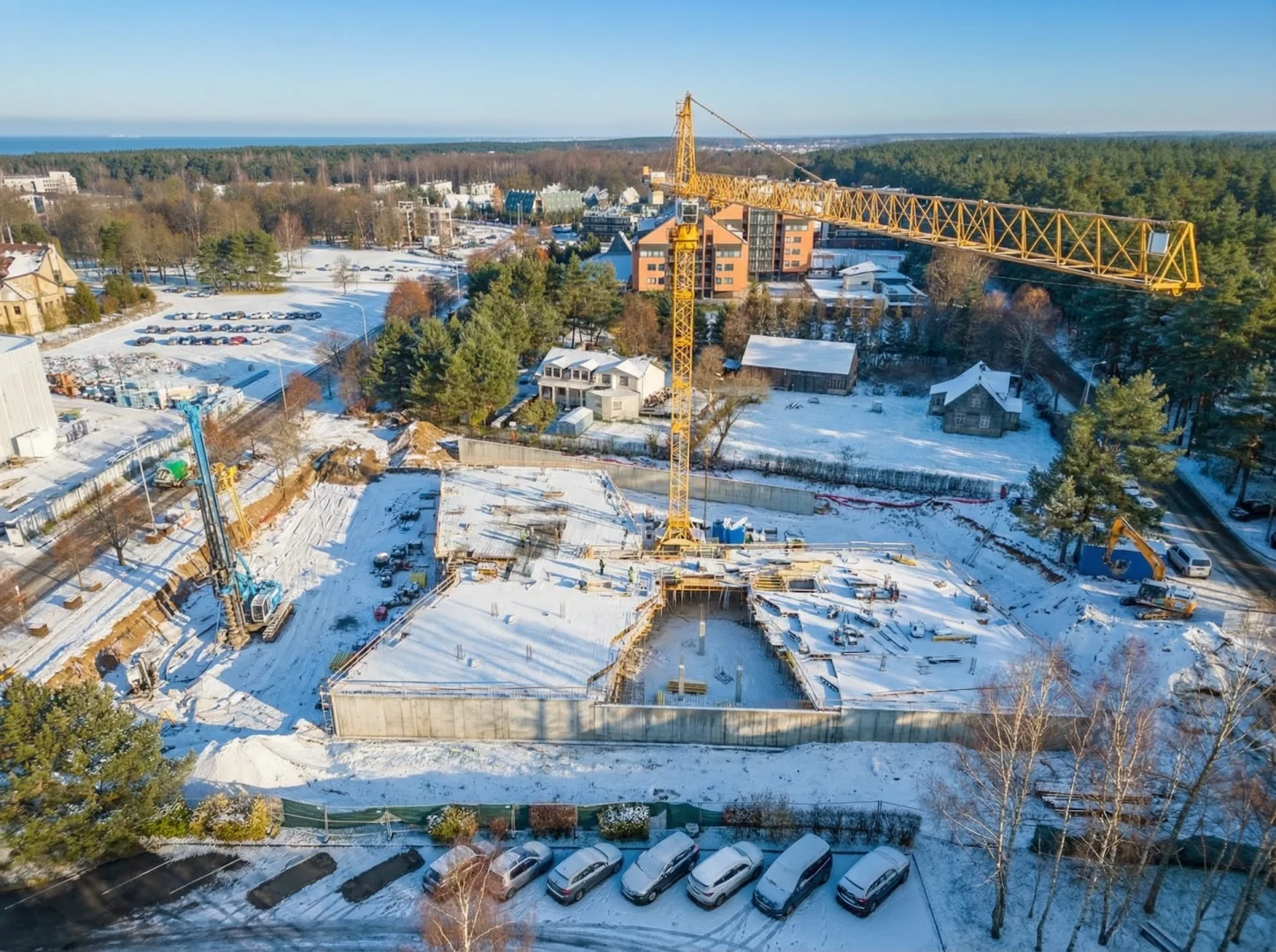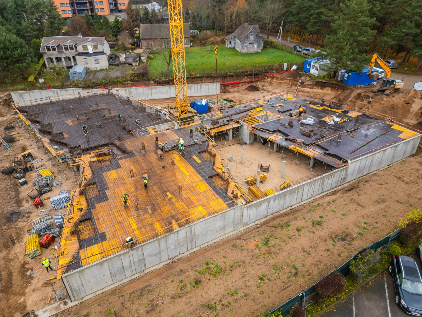 Įrengtos požeminio parkingo ir pirmojo aukšto konstrukcijos.