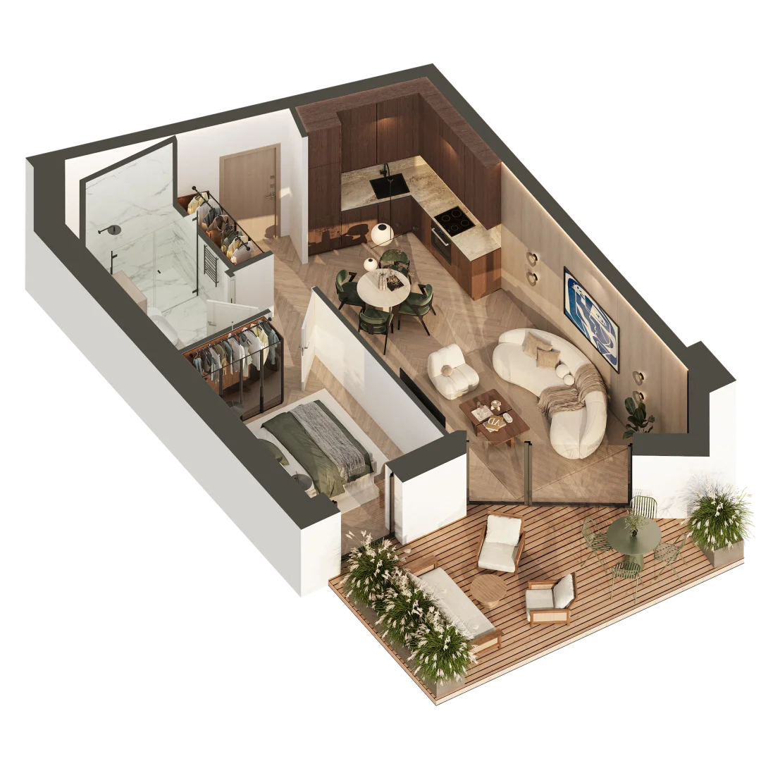Rafinuota architektūra, modernūs apartamentai su balkonais ir terasomis, stilingos laiptinės, žaliuojantys kiemai, kokybiški sprendimai ir apgalvotos lauko erdvės poilsiui bei žaidimams kuria idealaus būsto pajūryje portretą poilsiui, šeimai ar investicijai.