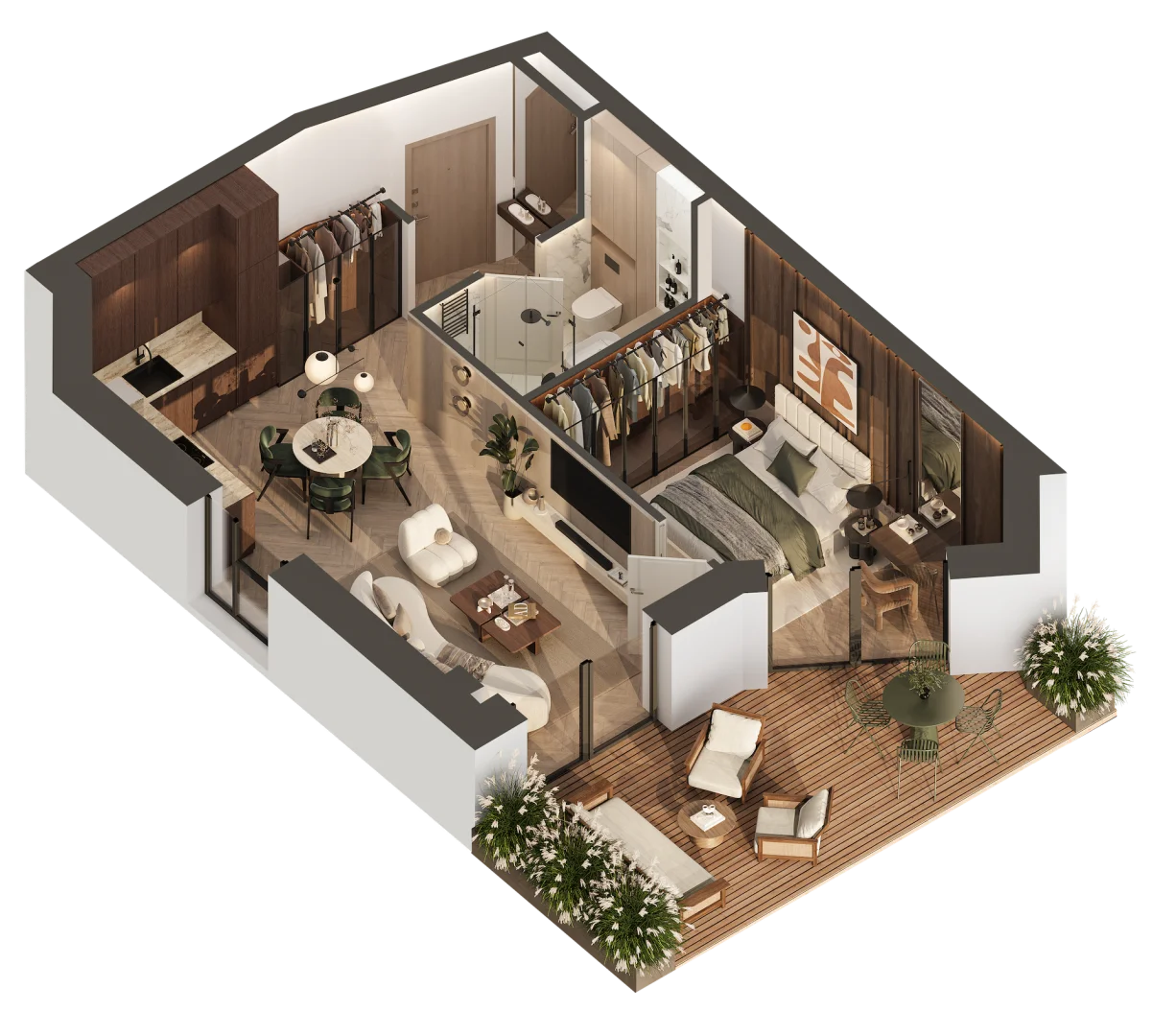 Rafinuota architektūra, modernūs apartamentai su balkonais ir terasomis, stilingos laiptinės, žaliuojantys kiemai, kokybiški sprendimai ir apgalvotos lauko erdvės poilsiui bei žaidimams kuria idealaus būsto pajūryje portretą poilsiui, šeimai ar investicijai.