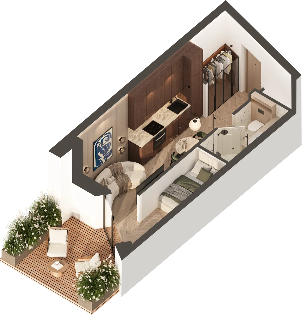 Rafinuota architektūra, modernūs apartamentai su balkonais ir terasomis, stilingos laiptinės, žaliuojantys kiemai, kokybiški sprendimai ir apgalvotos lauko erdvės poilsiui bei žaidimams kuria idealaus būsto pajūryje portretą poilsiui, šeimai ar investicijai.