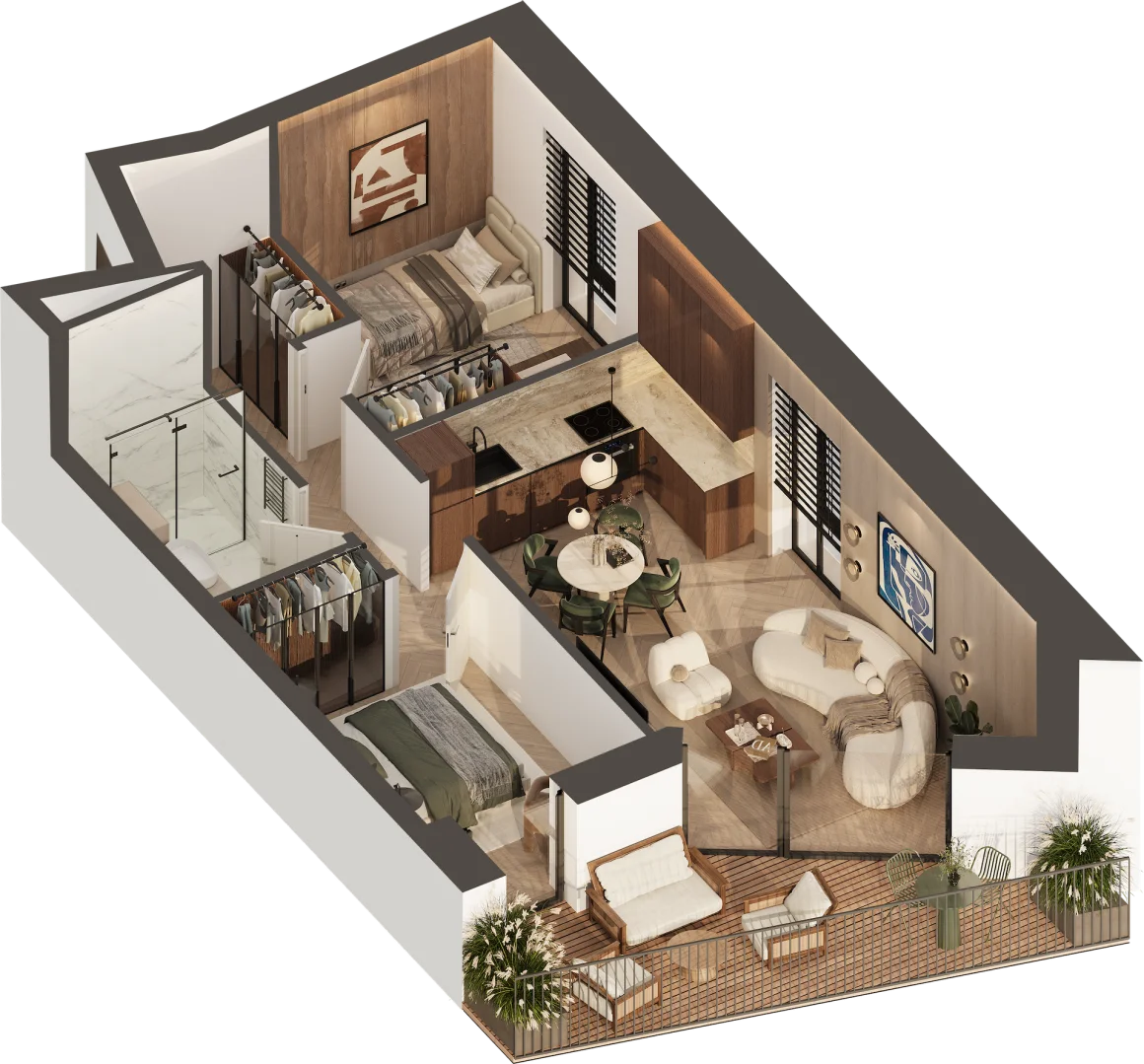 Rafinuota architektūra, modernūs apartamentai su balkonais ir terasomis, stilingos laiptinės, žaliuojantys kiemai, kokybiški sprendimai ir apgalvotos lauko erdvės poilsiui bei žaidimams kuria idealaus būsto pajūryje portretą poilsiui, šeimai ar investicijai.