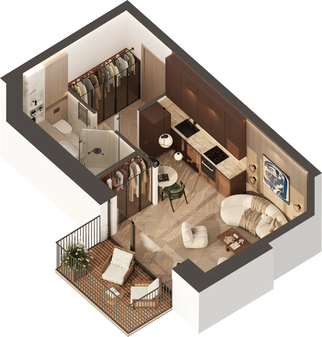 Rafinuota architektūra, modernūs apartamentai su balkonais ir terasomis, stilingos laiptinės, žaliuojantys kiemai, kokybiški sprendimai ir apgalvotos lauko erdvės poilsiui bei žaidimams kuria idealaus būsto pajūryje portretą poilsiui, šeimai ar investicijai.