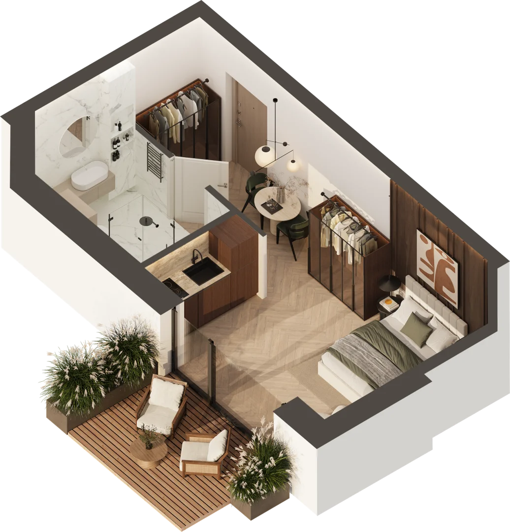 Rafinuota architektūra, modernūs apartamentai su balkonais ir terasomis, stilingos laiptinės, žaliuojantys kiemai, kokybiški sprendimai ir apgalvotos lauko erdvės poilsiui bei žaidimams kuria idealaus būsto pajūryje portretą poilsiui, šeimai ar investicijai.